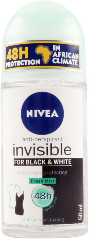 6 déodorants roller Nivea Invisible For Black&White 48 h - Brume fraîche