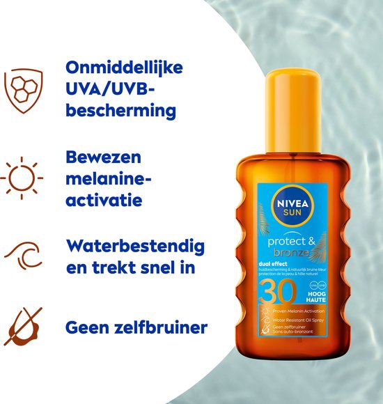 NIVEA SUN Protect & Bronze Spray Huile Solaire SPF 30 - Spray Solaire - Waterproof - 200 ml