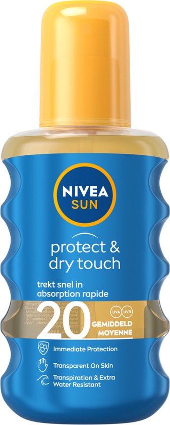 NIVEA SUN Crème Solaire - Spray Solaire Transparent Protect & Dry Touch - SPF 20 - 200 ml