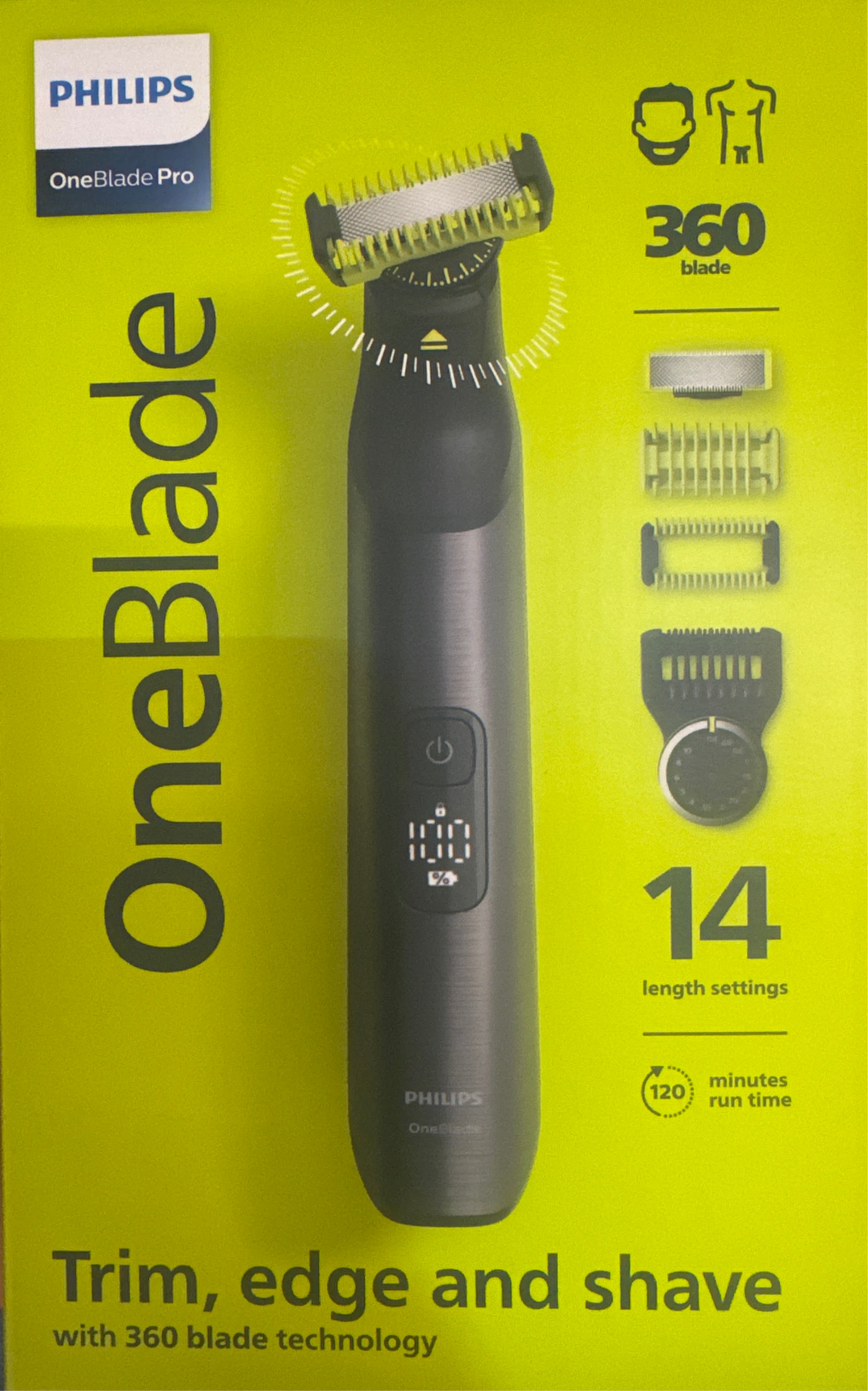 Philips OneBlade Pro 360 Visage + Corps – Argent – Tondeuse, rasoir et styler tout-en-un – Pochette de rangement incluse