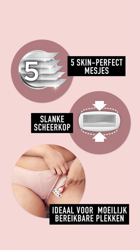 - Les 5 lames de rasoir Skin Perfect offrent un rasage en douceur et une sensation douce et soyeuse après le rasage.