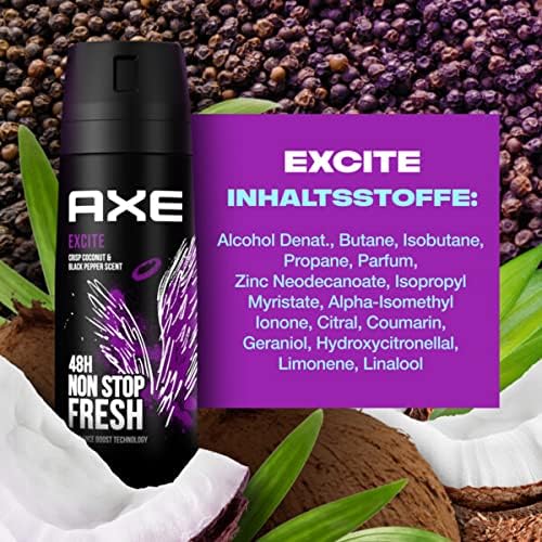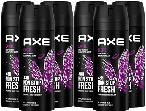 - AXE Deospray Excite 0% aluminiumzouten, 6 x 150 ml
