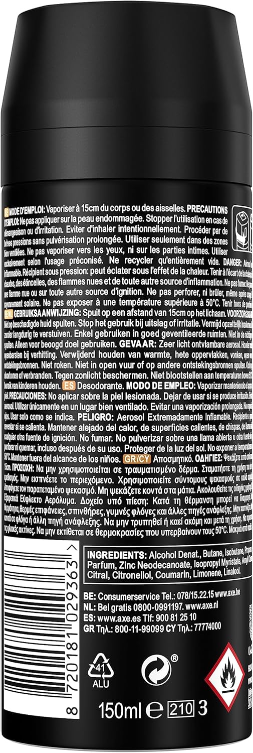 Breng fris blijven naar een hoger niveau. Leef dat dagelijkse frisse leven. Je weet nooit wat er kan gebeuren, dus heb je een deodorant bodyspray nodig die ervoor zorgt dat je de hele dag heerlijk ruikt, elke dag weer. Met zijn geurbeschermende technologie heeft de verbeterde Axe Dark Temptation deodorant bodyspray het onder controle. De onweerstaanbare geur van donkere chocolade met een vleugje kruiden houdt je fris en 100% voorbereid. De hele dag door. Heb je onze frisse geüpgrade look gezien? Dat is niet het enige dat er verbeterd is. Onze revolutionaire technologie met dubbele werking bestrijdt de geur veroorzakende bacteriën, waardoor je dag en nacht onweerstaanbaar ruikt. Dus wat er ook op je pad komt, je bent er klaar voor. Maak je geen zorgen, we hebben niet geknoeid met de klassieke Axe dark temptation geur. We weten dat die al perfect is. Bij Axe geloven we dat een van de sleutels tot aantrekkingskracht een onweerstaanbare geur is. Daarom zijn wij toegewijd om je de beste tools te geven om ervoor te zorgen dat, wanneer de gelegenheid zich voordoet, jij op je best ruikt. Van onze bodyspray tot onze douchegel, van onze anti-transpirant spray tot onze deodorant voor mannen, we doen er alles aan om ervoor te zorgen dat aantrekkingskracht voor iedereen is. Het vernieuwde en verbeterde Axe. Zorg goed voor jezelf en voor onze planeet.