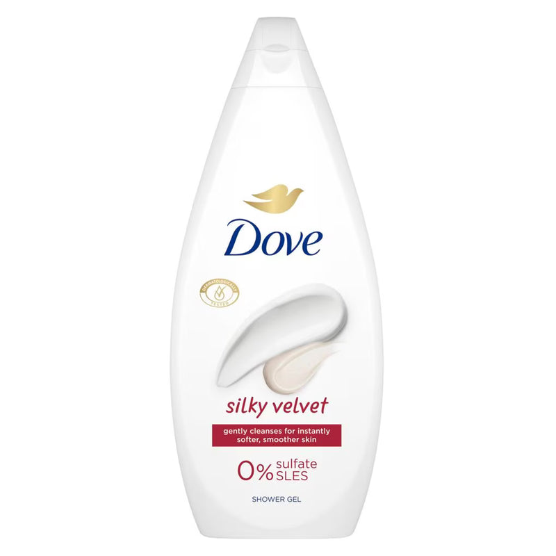 De Dove Essential Silky Velvet Douchegel biedt een milde reiniging voor een direct zachtere en gladdere huid.