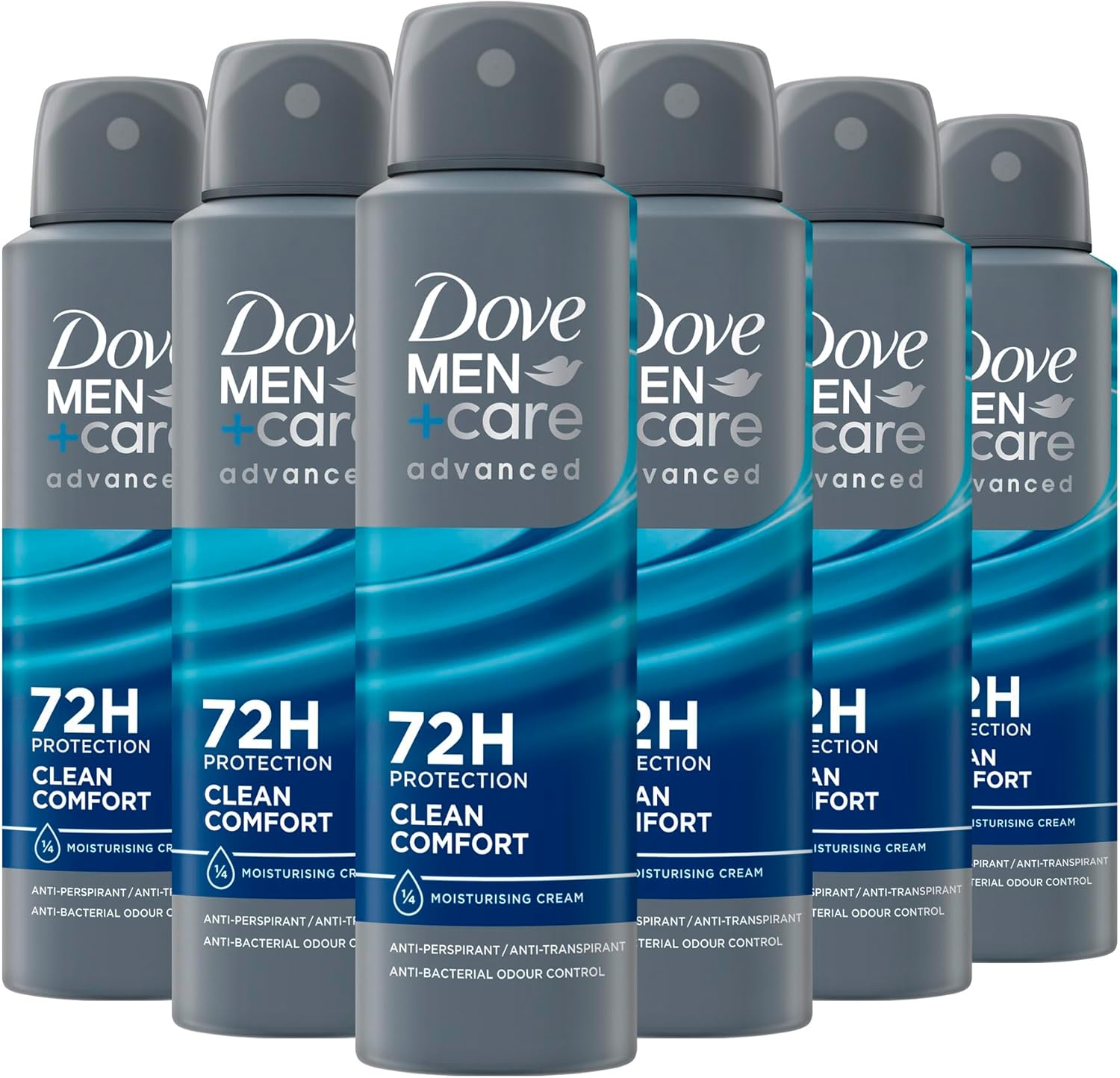 Dove Men+Care Advanced Clean Comfort Anti-Transpirant Deodorant Spray, tot 72 uur bescherming tegen zweet en nare geurtjes - 6 x 150 ml - Voordeelverpakking