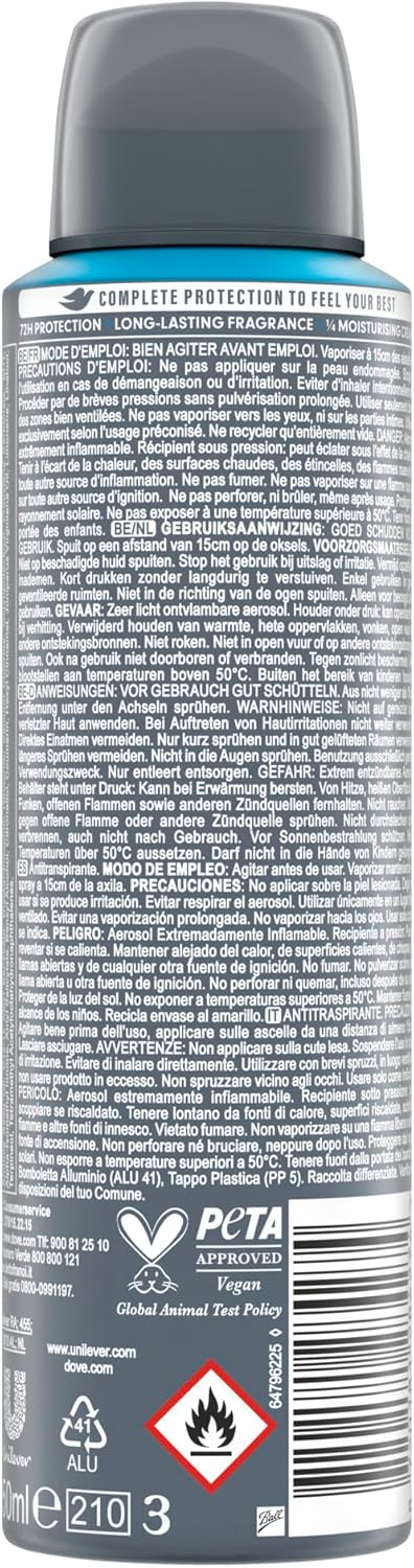 Over het product: Dove Men+Care Advanced Clean Comfort Anti-Transpirant Deodorant Spray met anti-bacteriële geurbestrijding beschermt tot 72 uur lang tegen zweet en nare geurtjes, heeft een langdurig frisse geur en verzorgt je oksels. Met een frisse, mannelijke geur voel jij je langdurig fris en zelfverzekerd. Deze Dove Men+Care anti-transpirant met 1/4 hydraterende crème verzorgt de okselhuid, zo behoren irritaties door zweet en scheren tot het verleden. Je krijgt een gehydrateerde en beschermde huid en gladde, comfortabel aanvoelende oksels. Dove Men+Care biedt naast anti-transpiranten ook deodoranten aan. Beide geven een langdurig fris gevoel en hebben een verzorgende werking voor de kwetsbare okselhuid. Anti-transpiranten bevatten aluminiumzouten die de hoeveelheid zweet verminderen en ervoor zorgen dat je oksels droog blijven, zodat onaangename geurtjes geen kans krijgen. Deodoranten bevatten geen aluminiumzouten, maar wel actieve ingrediënten die ongewenste geurtjes bestrijden. Beide formules zijn vrij van alcohol dus welke je ook kiest, je kunt altijd vertrouwen op bescherming, frisheid en heerlijk zachte en verzorgde oksels. Hoe te gebruiken: Klaar voor een langdurig fris gevoel? Schud de spuitbus eerst even voor gebruik en houd deze 15 cm van je oksels. Geniet vervolgens van de bescherming en verzorging die je verdient. Wacht een paar seconden na het aanbrengen van je anti-transpirant spray voordat je je favoriete shirt aantrekt, om vlekken te voorkomen. Dit geeft de anti-transpirant deodorant de tijd om te drogen en zorgt ervoor dat je volledig beschermd bent. Over Dove Men+Care: Dove Men+Care hanteert een andere definitie van kracht: een waarin verzorging centraal staat. Omdat Dove Men+Care gelooft dat verzorging een man sterker maakt. Echte kracht blijkt uit de manier waarop je zorgt voor mensen die belangrijk zijn, inclusief jezelf. Of je nu op zoek bent naar een deodorant die je de hele dag een fris en droog gevoel geeft of naar een douchegel om je huid te hydrateren. Dove Men+Care huidverzorgingsproducten zijn ontworpen om je huid te beschermen en te verzorgen.
