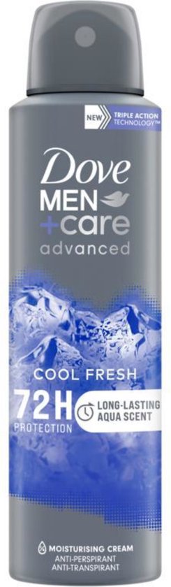 Dove Men+Care Advanced Cool Fresh Anti-Transpirant Deodorant Spray biedt tot 72 uur lang krachtige bescherming tegen zweet en nare geurtjes.