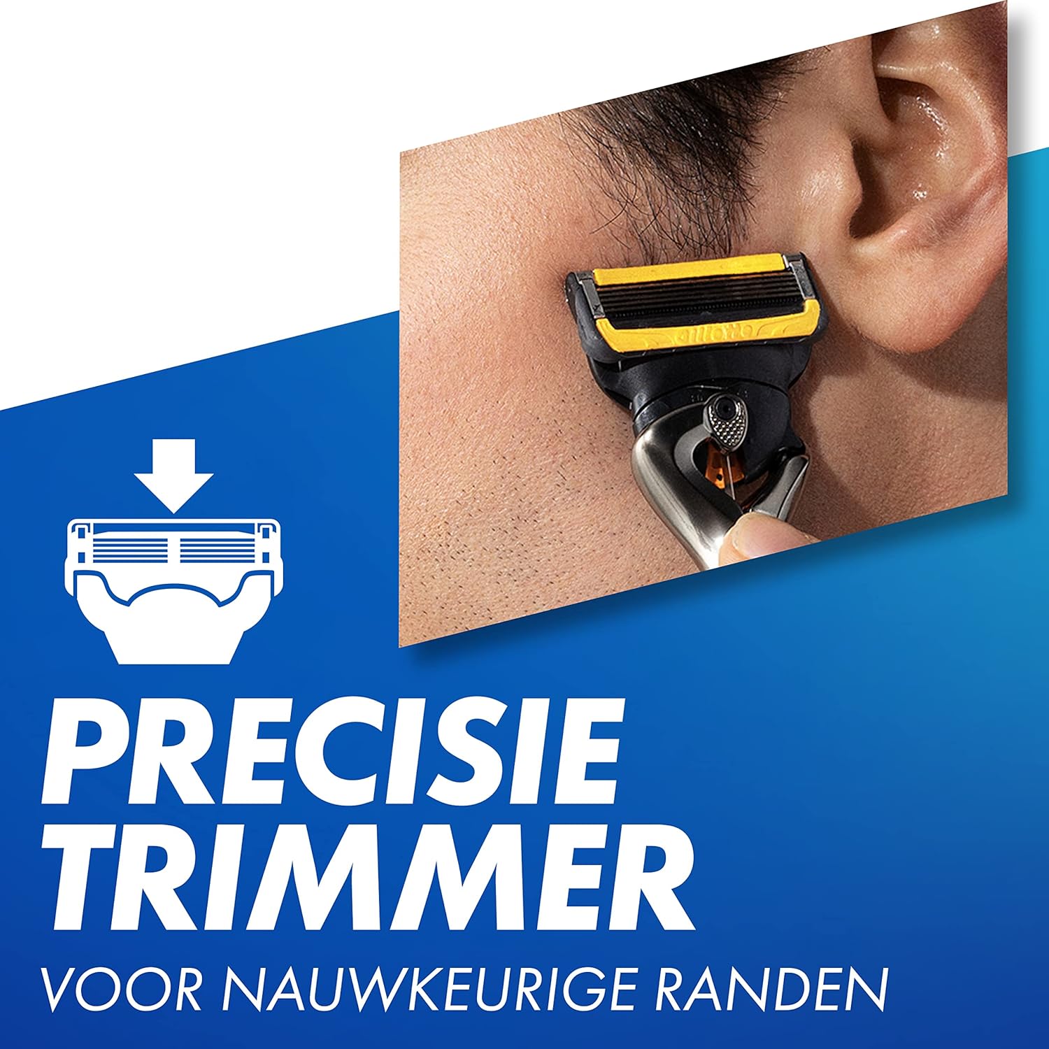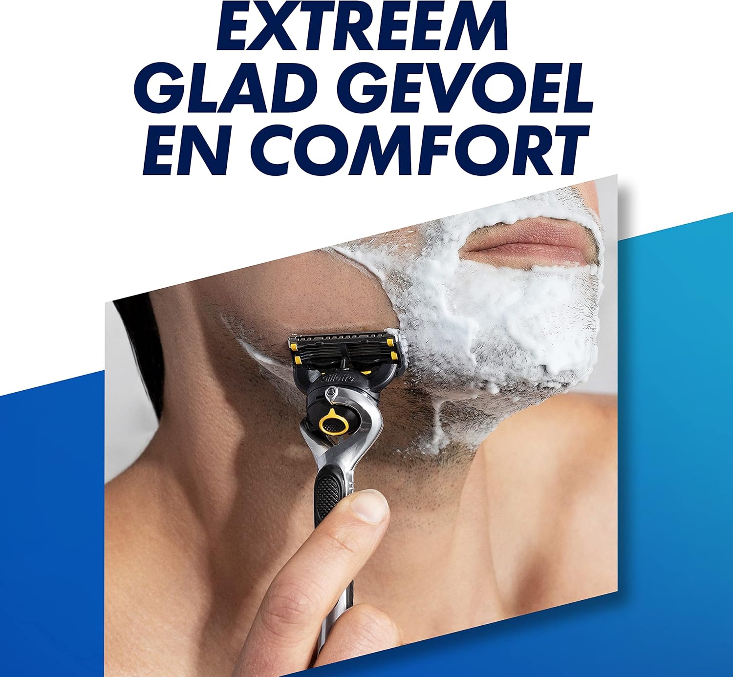 Het Gillette ProShield scheersysteem voor mannen, met beschermende strips voor en achter de mesjes, beschermt tegen irritatie tijdens het nauwkeurig en comfortabel scheren. De FlexBall-technologie volgt de gezichtscontouren en krijgt moeiteloos vrijwel elk haartje te pakken. Met de bladen dicht bij elkaar voor ongelofelijk comfort en een precisietrimmer op de achterkant, durf je zeker dicht op de huid te scheren.