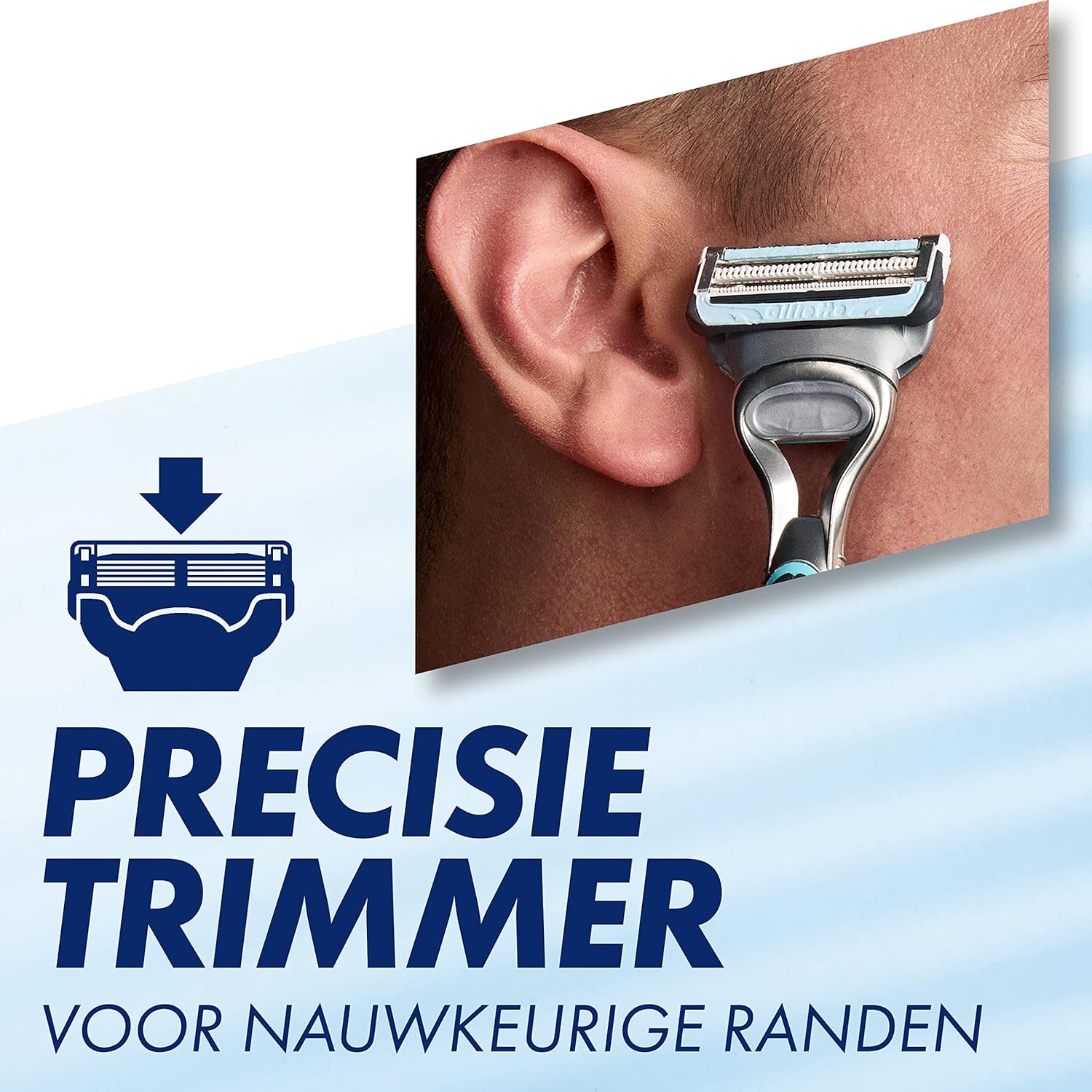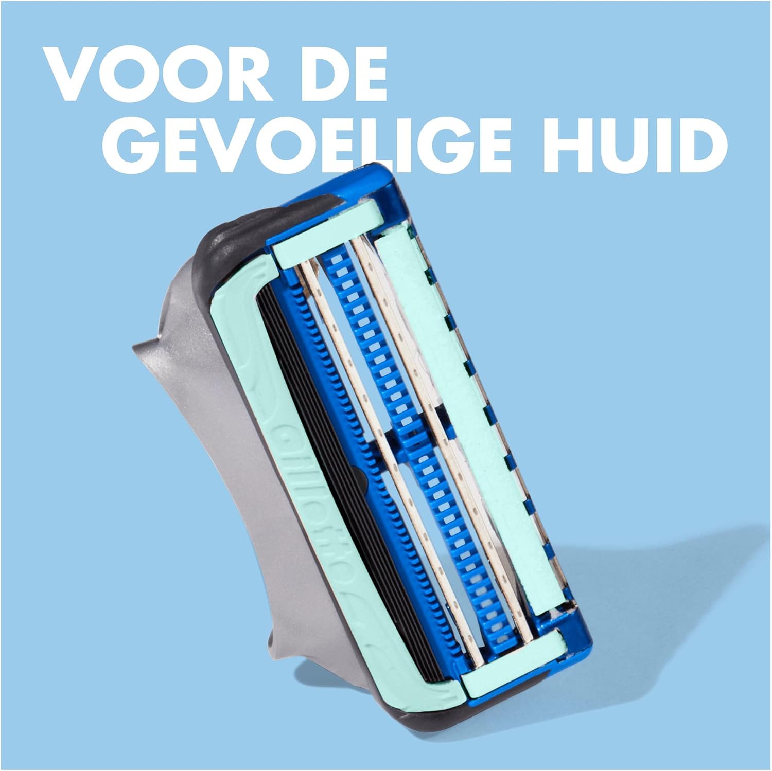 - Minimaliseert het contact tussen de mesjes en de gevoelige huid om irritatie te verminderen