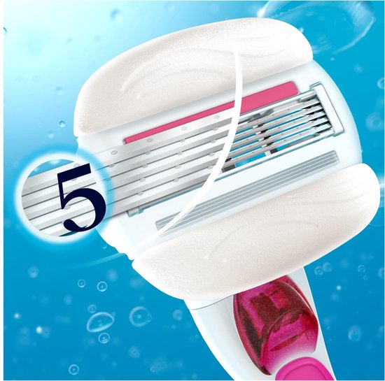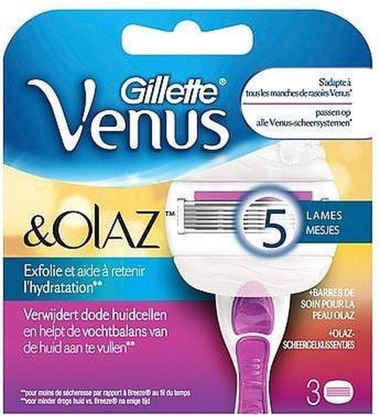 Alle Venus & Olaz-scheermesjes hebben 5 mesjes die zachtjes de dode huidcellen verwijderen.