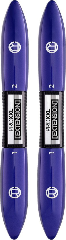 Deze duo-pack bevat twee PRO XXL EXTENSION Mascara's. Leer hoe je je eigen pro wordt met de nieuwe PRO XXL EXTENSION mascara, geïnspireerd op het effect van wimperextensions in een salon ! Onze 2-staps mascara is verrijkt met vezels tot 3mm, die zorgen voor een wimperverlengend effect. 79% ziet langere en vollere wimpers na elke laag*. Na meerdere laagjes worden je wimpers voller en langer dankzij de dubbele borstel technologie. Vrees niet, deze mascara blijft de hele dag zitten, geef niet af en vlekt niet. PRO XXL EXTENSION is geschikt voor gevoelige ogen en oftalmologisch getest. (*Consumententest, 105 vrouwen)
