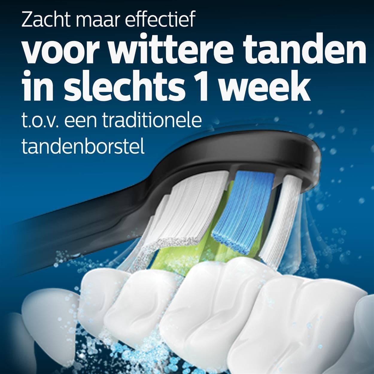 - Snel wittere tanden: Uw tanden zien er in slechts 7 dagen* witter uit dankzij de dicht op elkaar geplaatste haren van de Philips Sonicare W2 Optimal White-standaard opzetborstel.