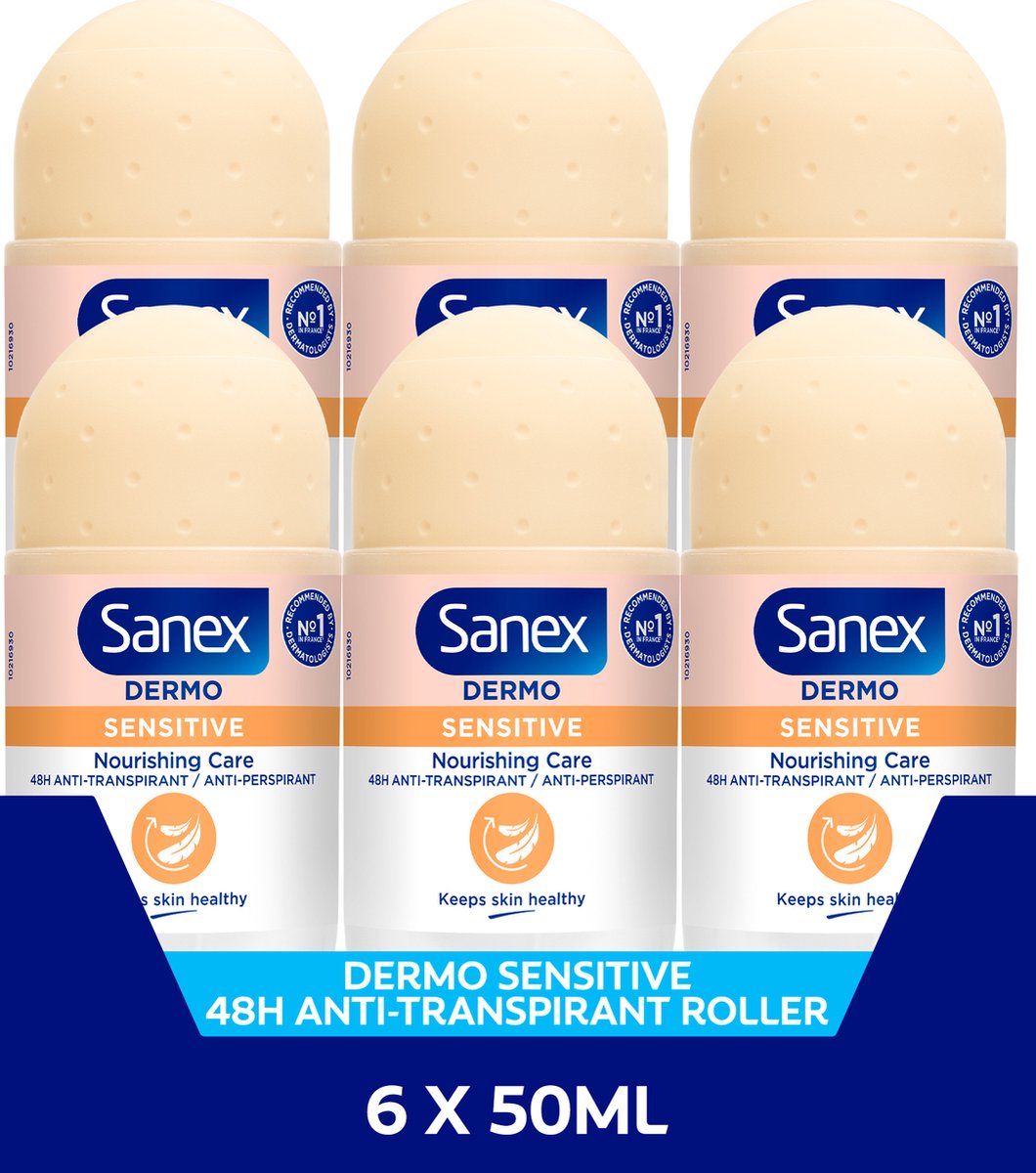 Sanex Dermo Sensitive Deodorant Anti-Transpirant Roller 6 x 50ml - Voordeelverpakking